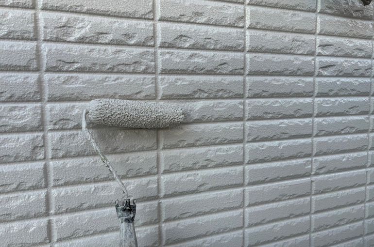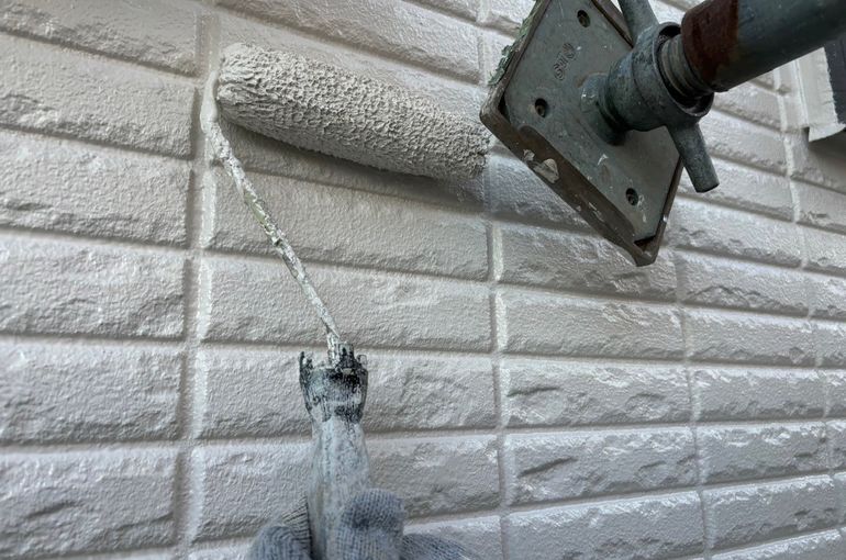 前回の外壁中塗りが終わり、上塗り作業に入りました!